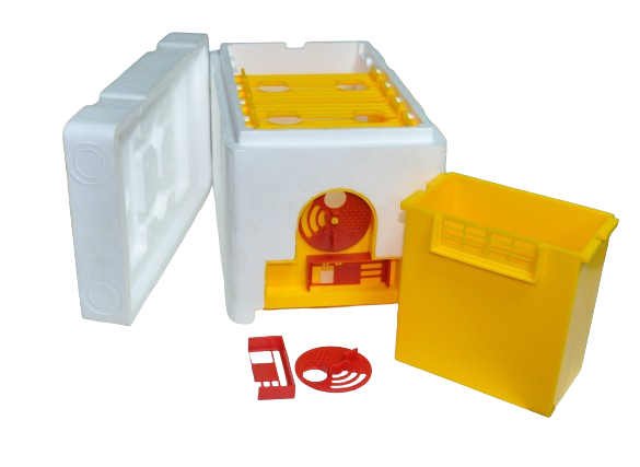 Нуклеус зроблений зі щільного пінополістиролу. Забезпечує ідеальні умови для теплого середовища та гарну вентиляцію. Нуклеус легко транспортується, зручний для чищення і водночас дуже гігієнічний. Він вміщує 4 пластикові рамки розміром 100х100 мм з отвором для поставлення клітковини з маткою та знімну пластикову годівницю з роздільною решіткою та сіткою поплавцем. Знявши годівницю на її місце, можна поставити ще дві рамки. Літковий загородник дає змогу плавно регулювати висоту льотка. Дно може бути легко відкрите для заселення бджіл. Вентиляційна відбувається через нижню сітку та лицьовий льотковий загородник розташований у верхній частині лицьового боку нуклеуса.